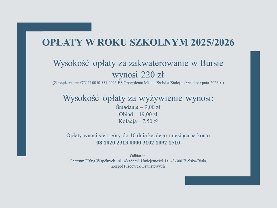 Opłaty w bursie w nowym roku szkolnym 2025/2026